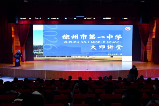 2026 年 1 月 16 日,徐州一中大师讲堂首期活动在紫金校区举行。校党委书记秦晓华、校长魏全星出席,副校长冯仰聪主持仪式,500 余名师生代表共同见证这场汇聚智慧与担当的思想盛宴。