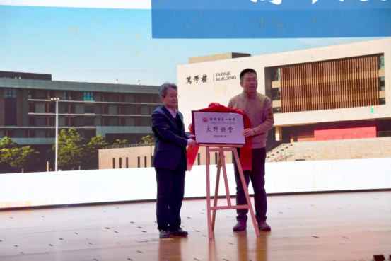 秦晓华书记与校友发起人代表王林共同为大师讲堂揭幕,标志着徐州一中大师讲堂活动正式启航。