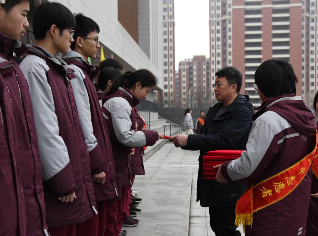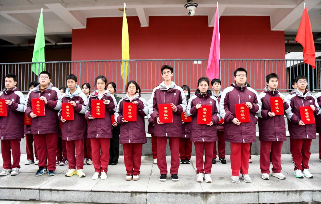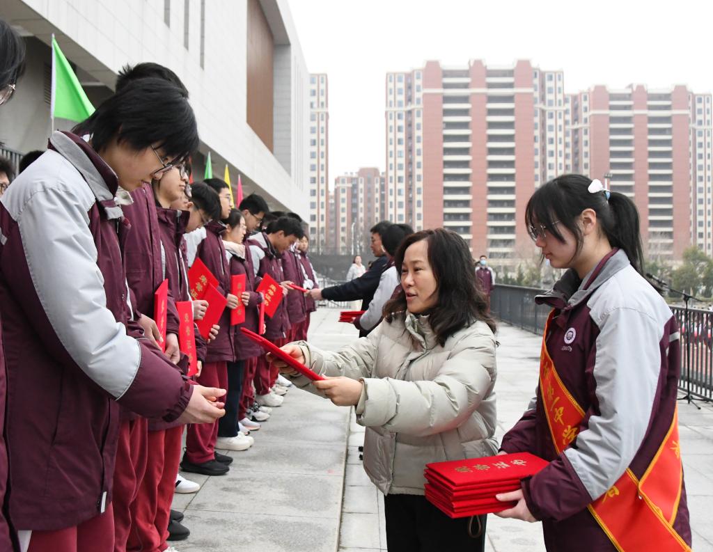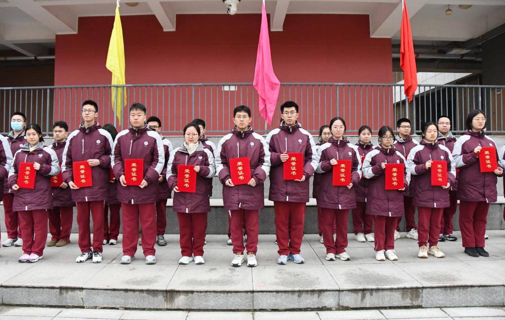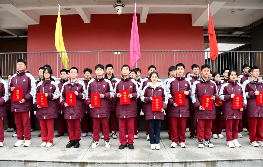 过去的一学期,我校涌现出一批品学兼优、全面发展的优秀学子,以及班风优良、特色鲜明的先进集体。颁奖仪式上56名各班三好学生代表,55名优秀学生干部,20个“文化特色班级”的班主任依次登台,校领导分别为获奖师生颁发奖状。一张张荣誉证书,既是对获奖者勤奋与奉献的肯定,更是对全体同学的激励与期许。愿获奖的同学如惊蛰的草木继续拔节生长,也愿更多同学以榜样为镜,在这个春天奋力追赶。