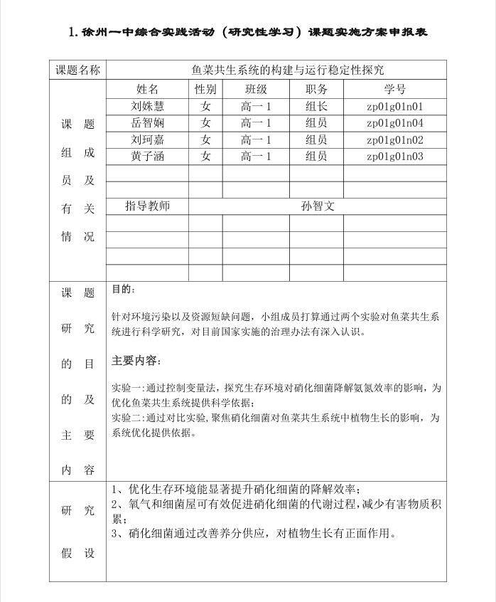 本实验聚焦“硝化细菌的生存环境对氨氮降解效率的影响”及“硝化细菌对植物生长的作用”两个核心问题,通过控制变量实验明确关键参数,为家庭或小型鱼菜共生系统的构建提供数据支撑。