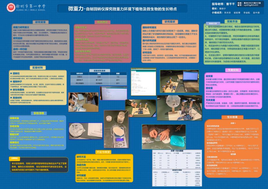 题目:自制回转仪探究微重力环境下植物及微生物的生长特点 |
