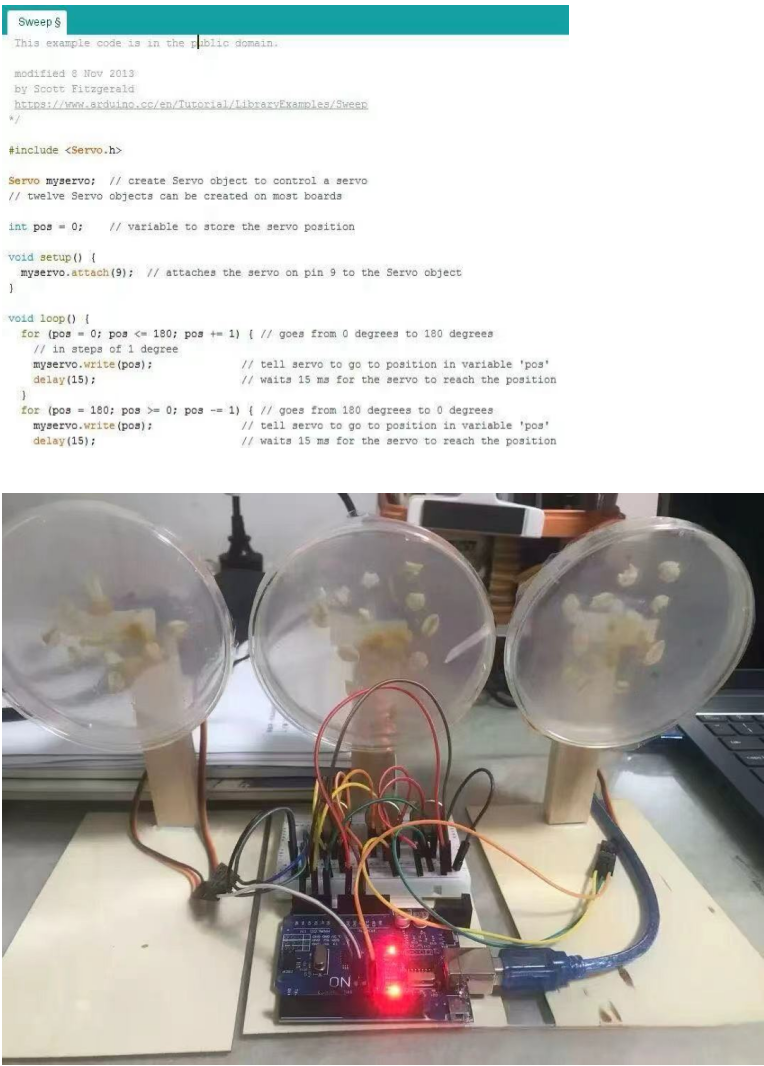 - 培养模块:在转盘上均匀固定3个透明培养盒,盒内铺脱脂棉,用于放置绿豆种子。