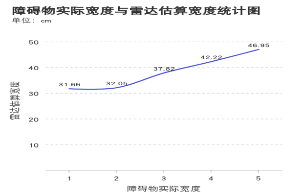 4. 障碍物的宽度对雷达影响较小,雷达估算的障碍物宽度随实际宽度的增大而增大。