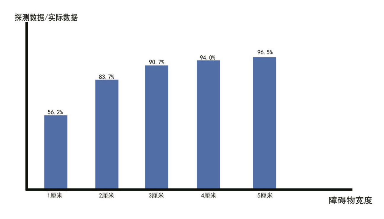 ② 宽度较大的物体探测数据与实际数据差距较小,更容易被识别。