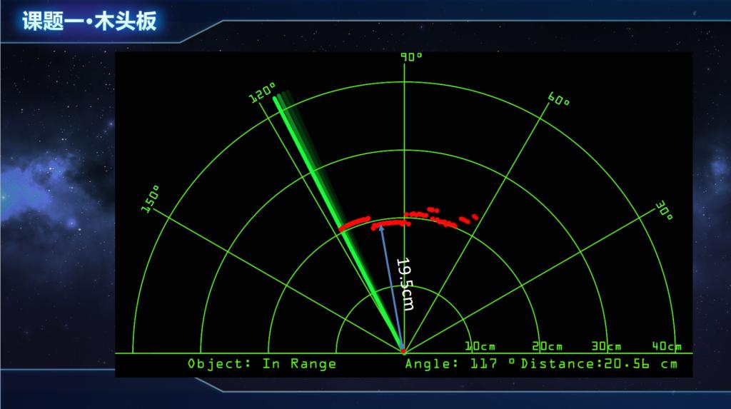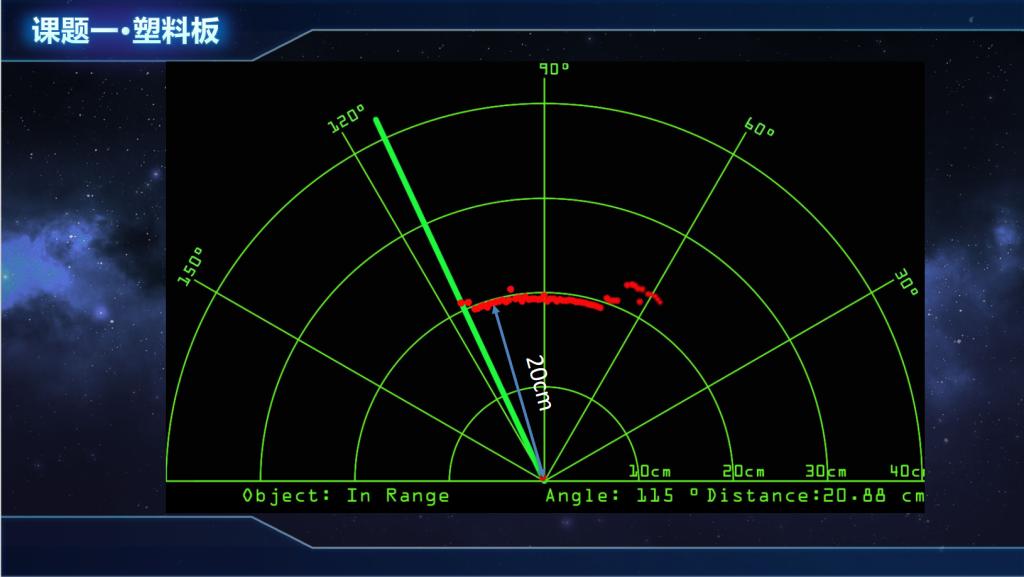 1. 亚克力板和木板在雷达图像上呈现出清晰、锐利的轮廓,测距数据稳定、准确。