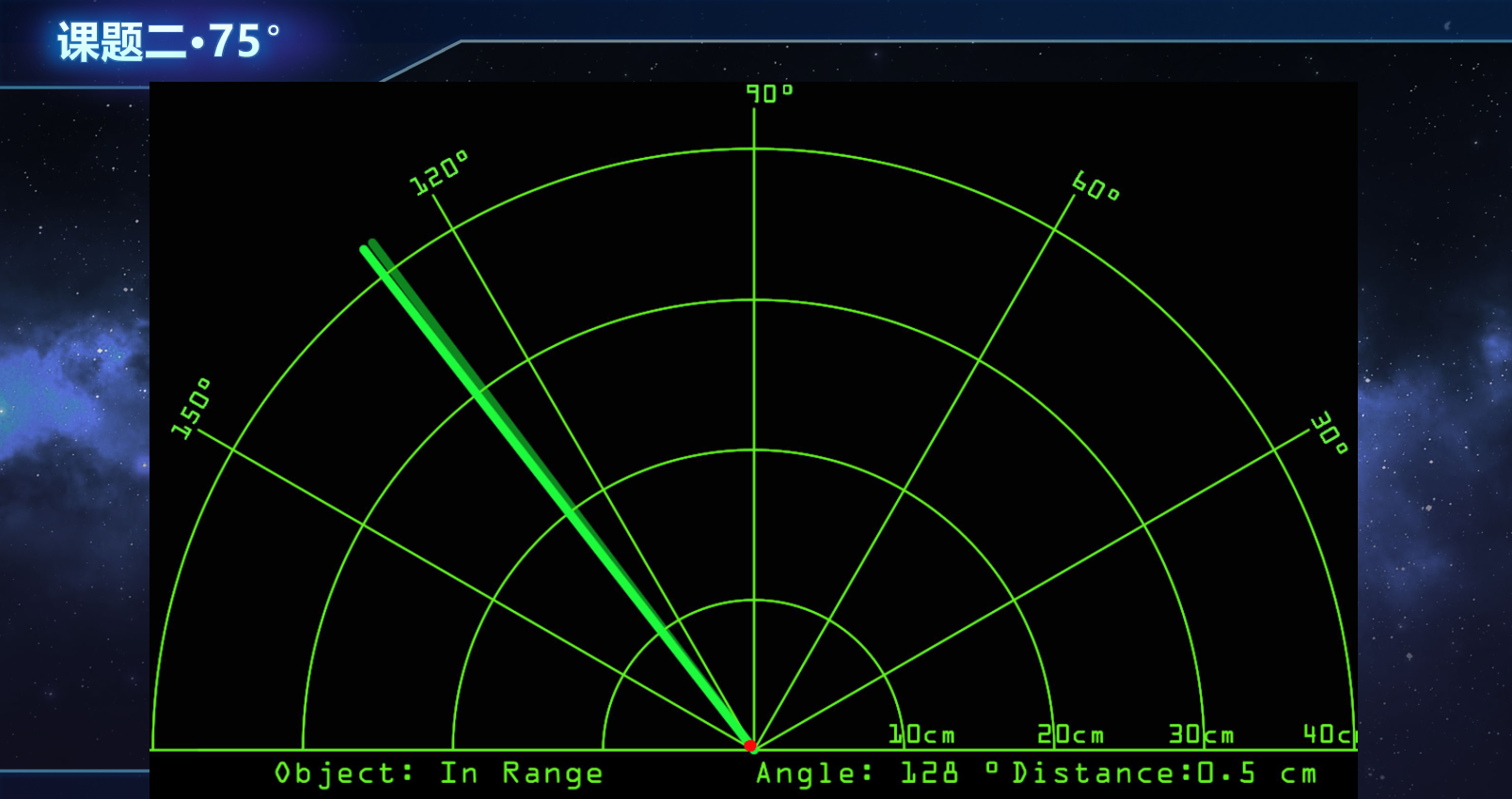 2. 随着角度增大至45°、60°和75°,目标物在雷达图像上的强度显著减弱,轮廓变得模糊不清,且测得的距离值开始出现较大误差(通常大于实际垂直距离)。