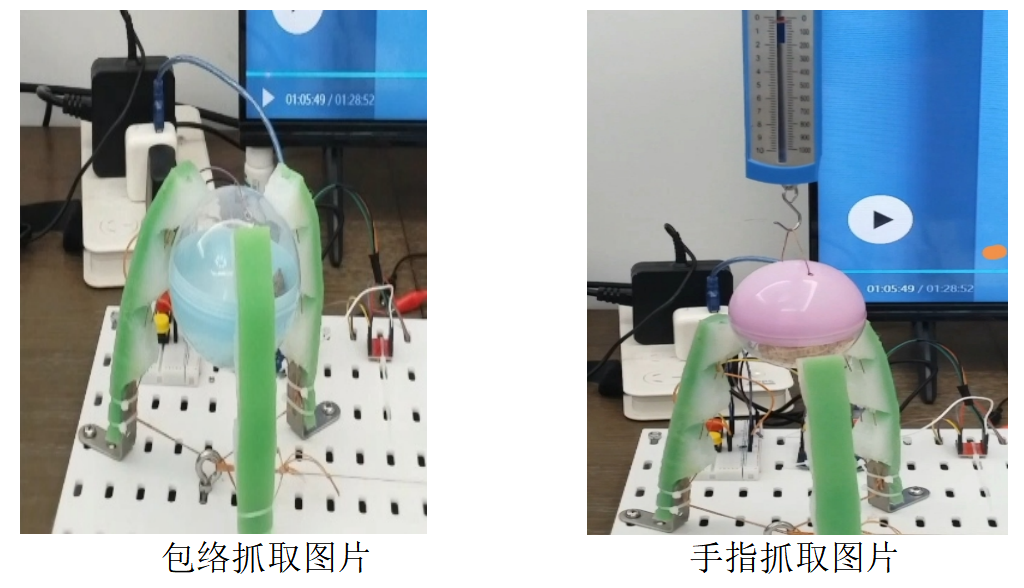 实验二、探究软体机械手抓取方式采用包络或指尖方式进行抓取物料,探究抓取力的大小;