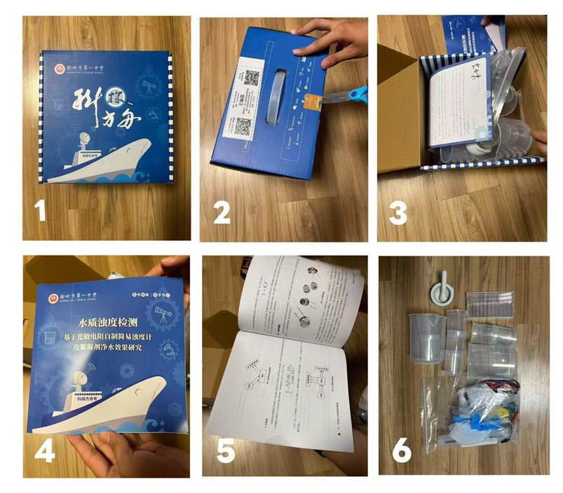 暑假期间,学校布置了“科探方舟”实验相关课题并告知我们每个课题小组会拿到一个辅助研究的实验箱。面对一个全新的课题和尚未熟悉的小组成员,我们一开始感到迷茫,但大家的心中更多的是对实验箱的期待。经过一段时间的等待,实验箱终于发到了我们手上,当时的心情激动而兴奋,我们认真地拍摄了开箱视频。打开实验箱的那一刻我们仿佛被带入了一个奇妙的科学世界,箱内配备了实验所需的各种器材,为我们接下来的探究提供了充分的条件。