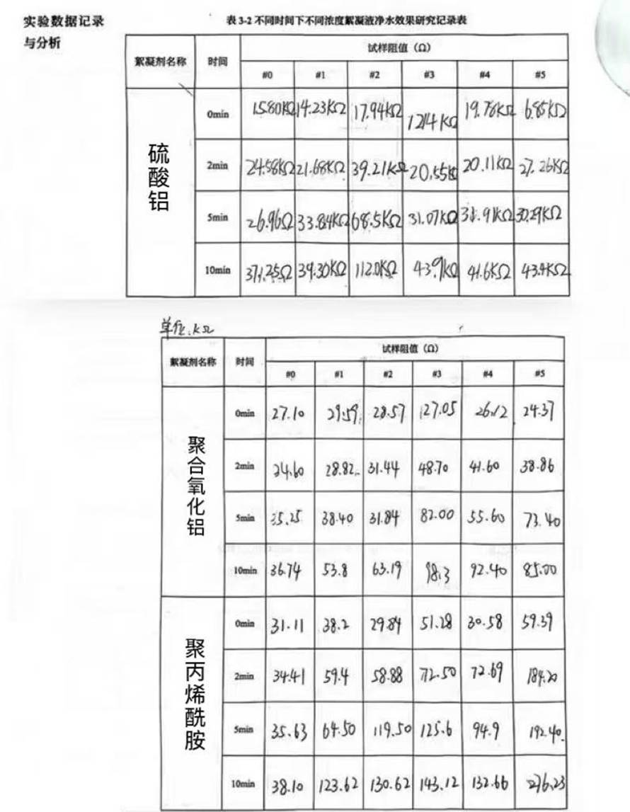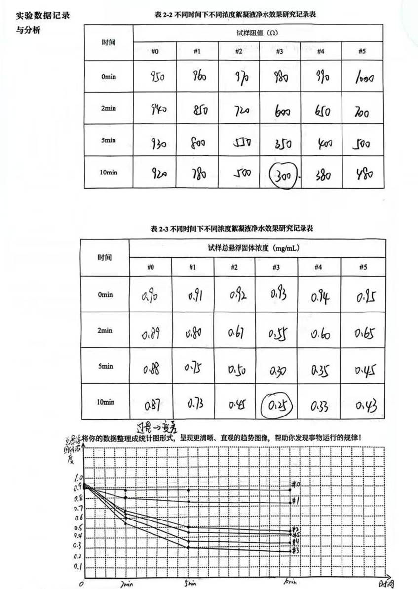 过程观察:絮凝剂的投加会改变水体的物理特性,如形成肉眼可见的絮状沉淀,且上层清液的澄清度与光敏电阻阻值的变化趋势高度相关。