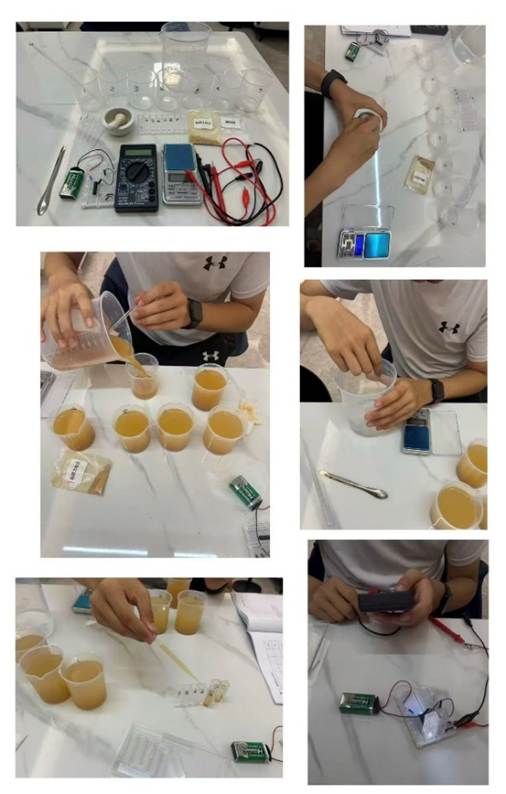 实验材料:面包板、光敏电阻、白色LED灯、220Ω电阻、电池(9V)、电池扣线(9V)、杜邦线、鳄鱼夹导线、万用电表、黑色吸管、150ml烧杯、1000ml烧杯、100ml量筒、比色皿、土壤、研钵、电子秤、称量纸、搅拌棒、记号笔、药勺、塑料盒、胶带、剪刀、电脑。