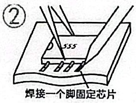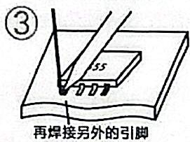 (3)加焊锡:①在被加热的引脚上添加适量的焊锡;
