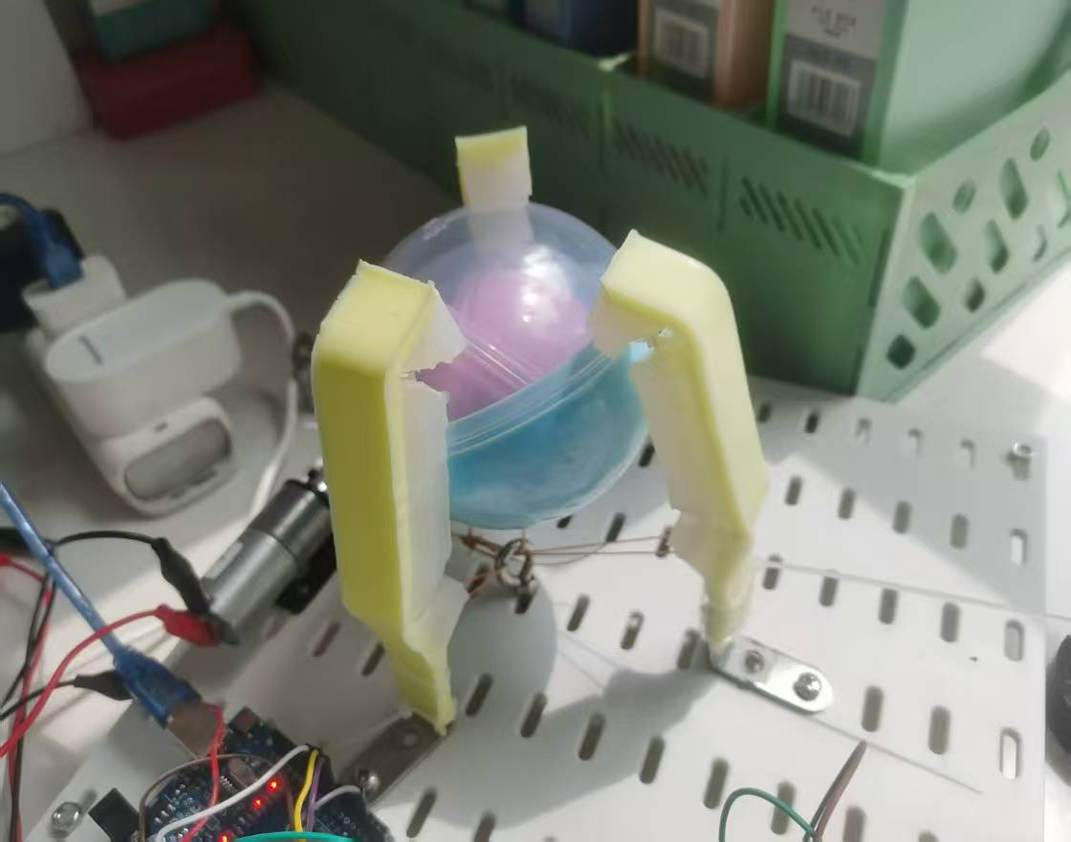 将气动软管嵌入手指基部,使用硅胶密封,连接至电磁阀与气泵。