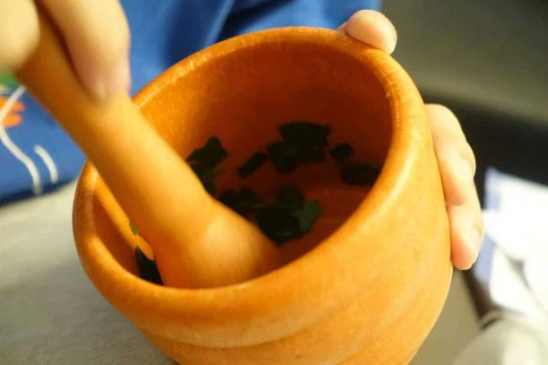 1、实验材料:二氧化钛粉末、新鲜树叶
