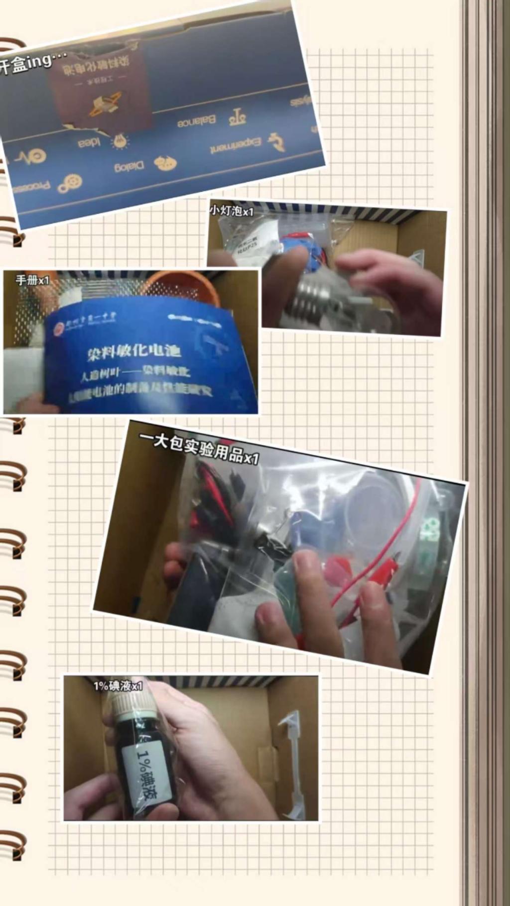 一、领取科探方舟科学盒子,录制开箱视频,拍摄开箱照片,检查实验物资。 二、加入课题微信群、组建课题小组,参加课题群科学第一课,学习染料敏化电池基本原理。 三、1. 登录学习平台,完成探究性学习导论课程; 2. 完成先备知识课程学习(半导体物理基础、染料敏化原理); 3. 利用科探方舟盒子开展实验探究: 实验一:天然染料提取(蓝莓、菠菜、紫甘蓝) 实验二:二氧化钛光阳极制备(涂膜、烧结) 实验三:电池组装与性能测试(电压、电流测量) 4. 记录实验数据,观察实验现象。 |