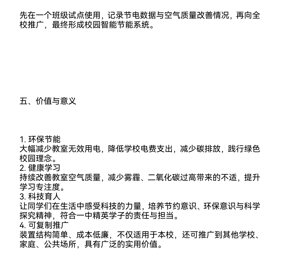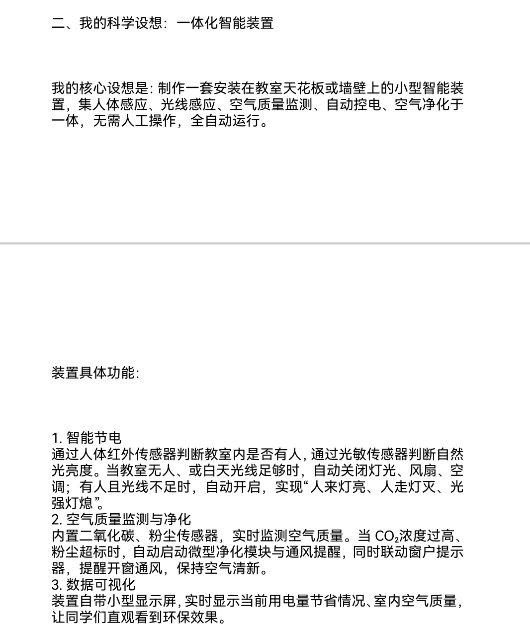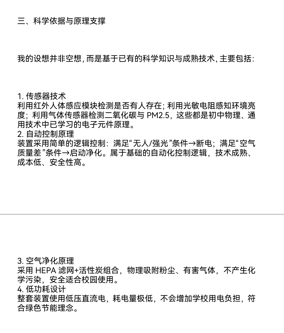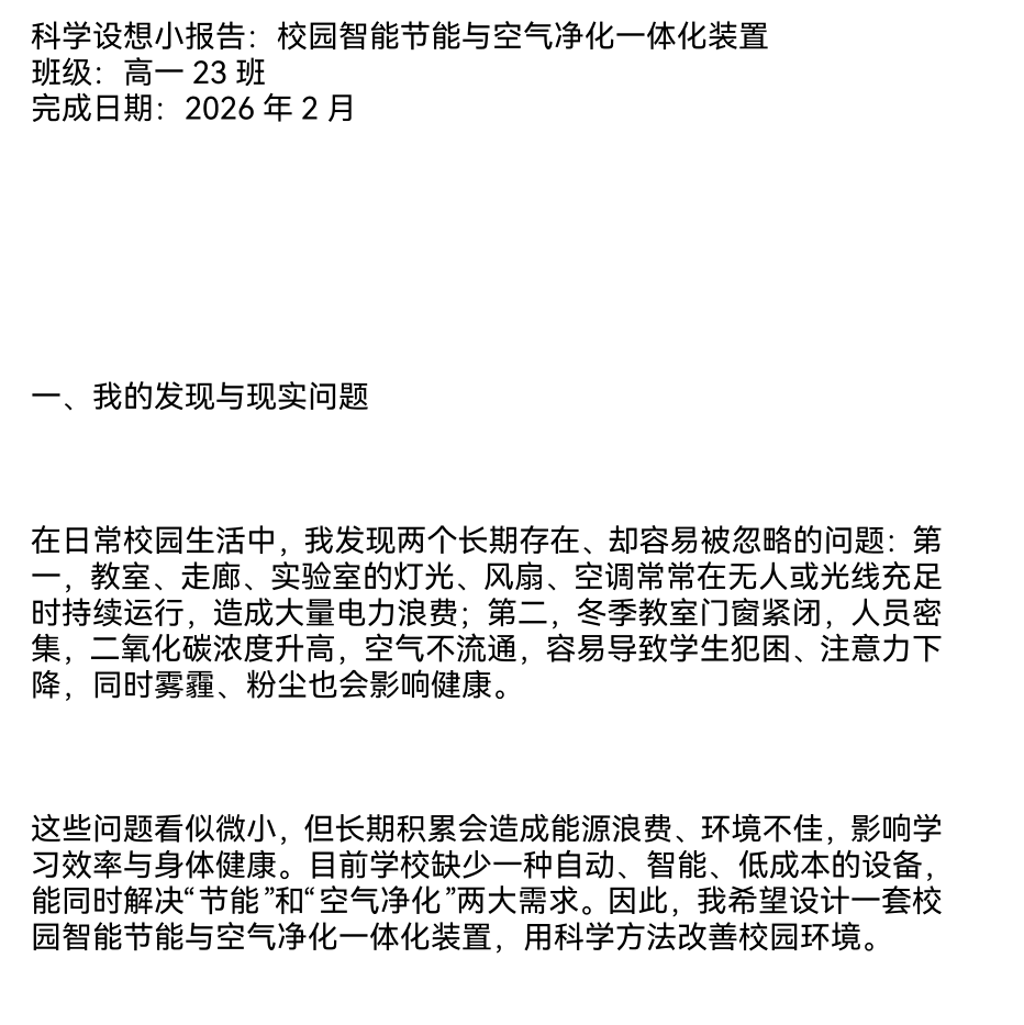 科学设想小报告:校园智能节能与空气净化一体化装置