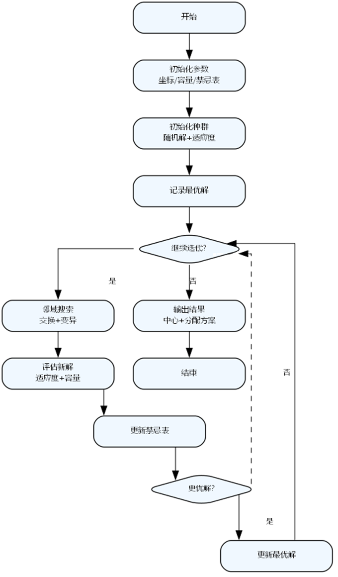 禁忌搜索(Tabu Search):通过记录近期操作的禁忌列表避免重复搜索,并允许暂时接受较差解以跳出局部最优,从而全局探索更优解。