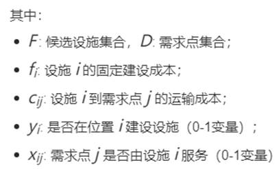· 动态场景:多周期选址模型(时间维度扩展)。