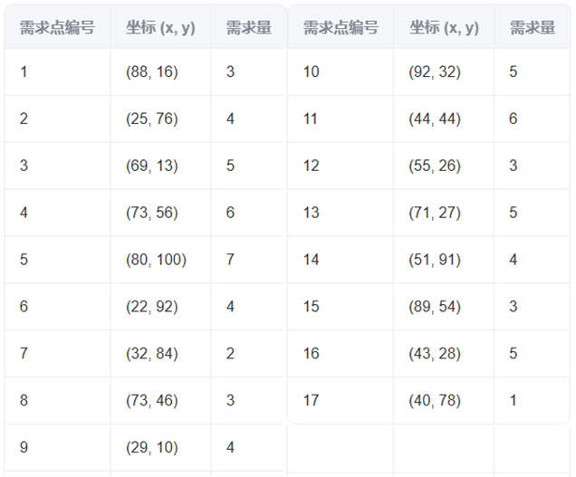 需求点坐标 demand_coordinates 及其需求量 demand。