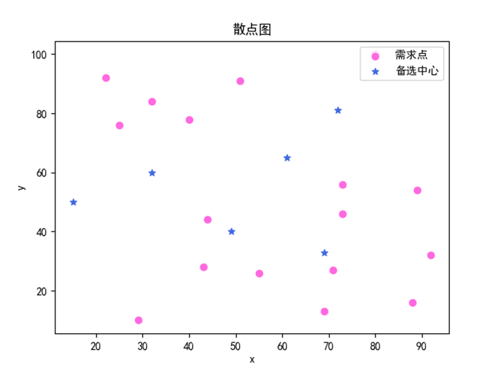 4-1-2 需求点及备选中心散点分布图