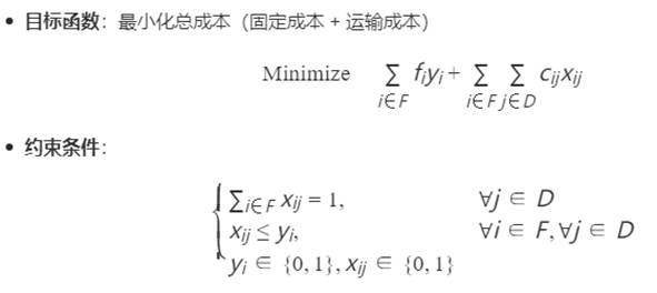 · 应用价值:在物流仓库选址、5G基站部署、医疗资源分配等场景中,FLP的优化可直接降低运营成本并提升服务响应能力。