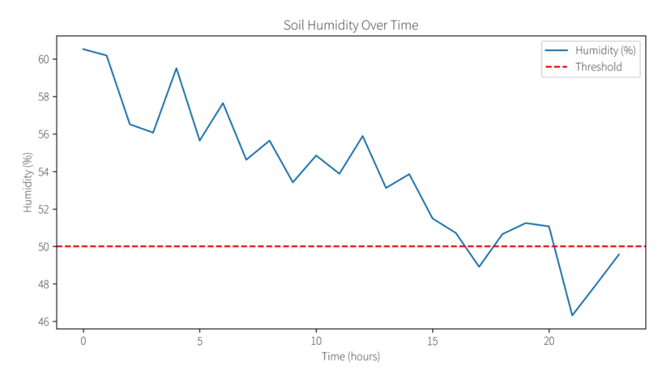 (2)课题实际取得的成果:①控制精度:系统能有效维持土壤湿度在阈值附近,波动范围合理。②触发准确性:5次浇水均发生在湿度低于50%时,逻辑可靠。③能源效率:电池续航满足24小时持续运行,电压下降在预期范围内。
