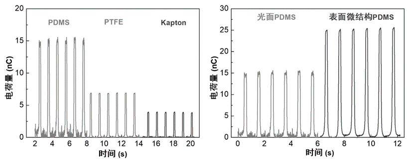图4-14-5 不同材料接触分离式摩擦纳米发电机在相同频率下转移电荷量对比