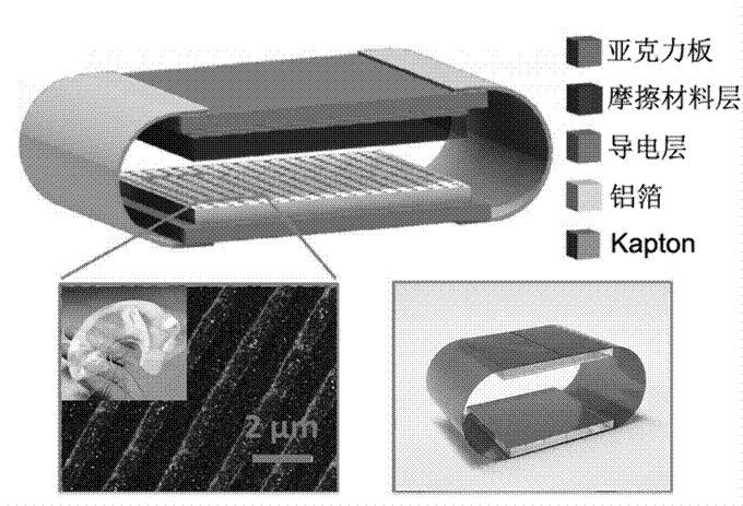 图4-14-3 接触分离式摩擦纳米发电机结构示意图及实物图