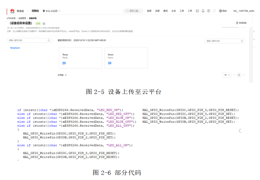 (3)通过WiFi模块将数据上传至华为云平台,实现远程监测与阈值报警设置。
