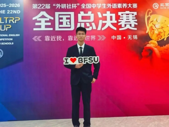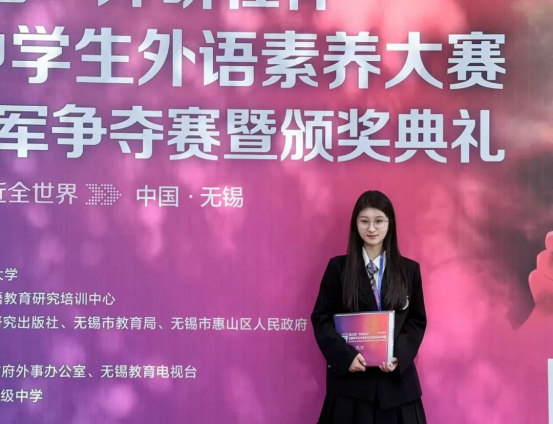 回望这段逐光之旅,从校园初试锋芒,到市赛并肩突围,再到省赛全力冲刺,最终站上无锡全国总决赛的舞台,每一步都印刻着热爱与坚持的足迹,更离不开母校、恩师与同学的托举与陪伴,是学校为我们搭建了逐梦的广阔平台,用浓厚的外语学习氛围、多元的赛事培养体系,让我们有底气走出校园,与全国优秀学子同台竞技;是各位老师用专业与耐心为我筑牢根基,在我焦虑迷茫时给予鼓励,在遇到瓶颈时指明方向。