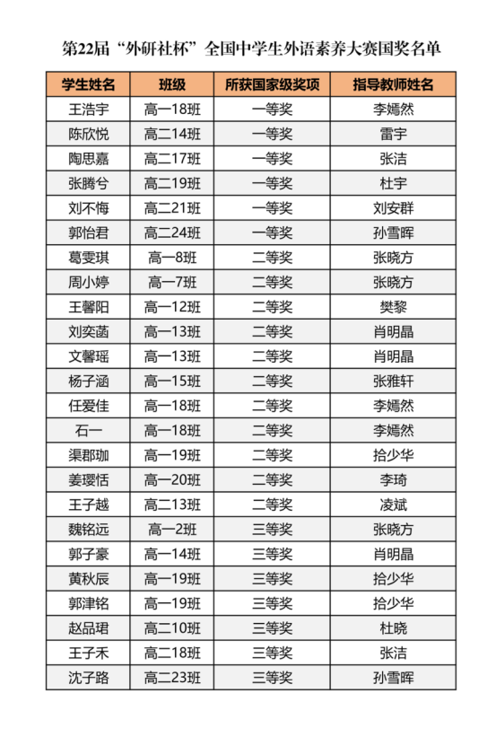 第22届“外研社杯”全国中学生外语素养大赛获奖喜报!