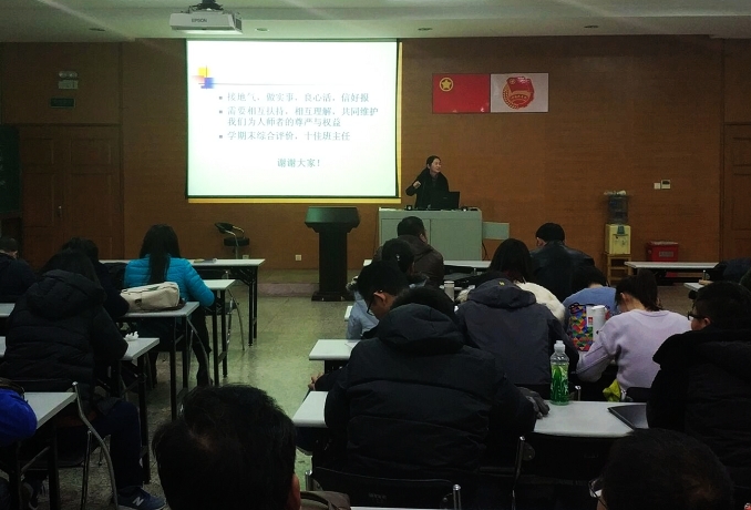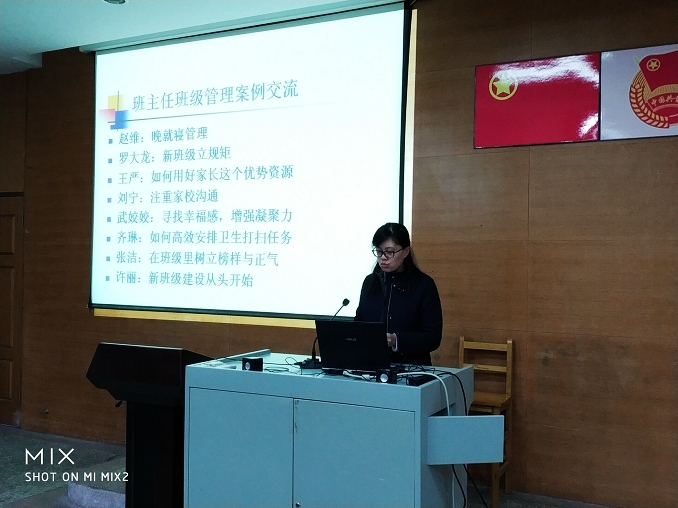 谢凤艳处长首先带领大家学习了《中小学德育工作指南》,明确学校德育工作的目的、任务、原则及落实体系。然后向班主任汇报了开学以来德育处的大致工作总结以及下一步的工作思路。说明了本次论坛的目的,在于了解我校班主任老师在班级管理方面的思考和实践现状,共同交流探讨班级管理的内涵、价值、多样化的实践尝试以及实践中遇到的困难、困惑,从而整体推进全校民主管理班级的工作,有效加强班集体建设。