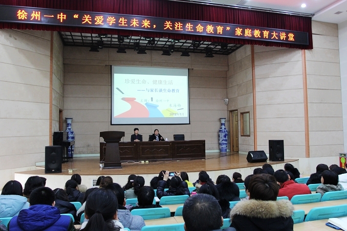 2018年1月20日上午9:30—11:30,徐州一中家庭教育大讲堂在本部校区毓秀礼堂再度开讲,本期主题:“关爱学生未来 关注生命教育”,由我校德育处长谢凤艳和资深心理教师朱海梅联袂主讲,300多位家长共济一堂,认真聆听,感悟生命情怀,提升家教理念。