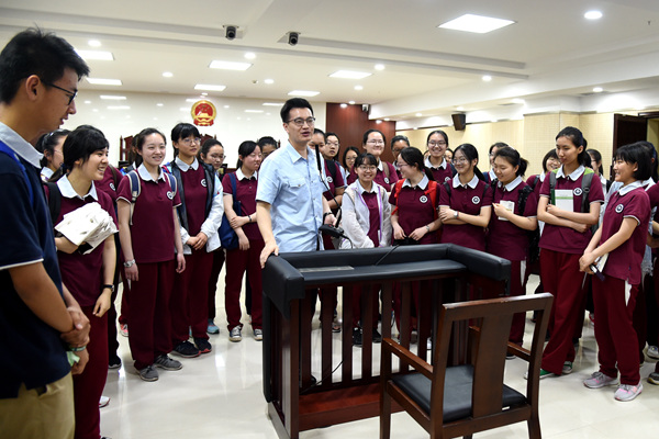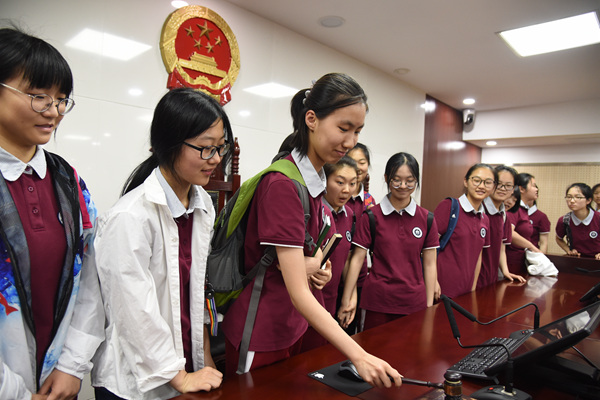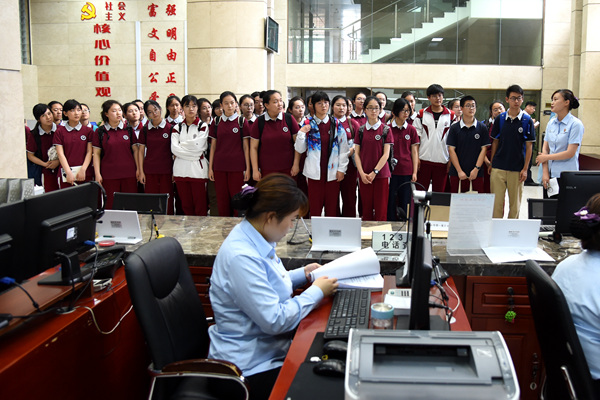 体验法院安检通道,让同学们充分了解法院安检工作对人身安全保护的重要性;在诉讼服务中心,法院工作人员详细介绍了法院的工作职能,立案、审判、执行工作的相关流程,便民措施等,使学生们对法院工作、法官职业有了新的认识。