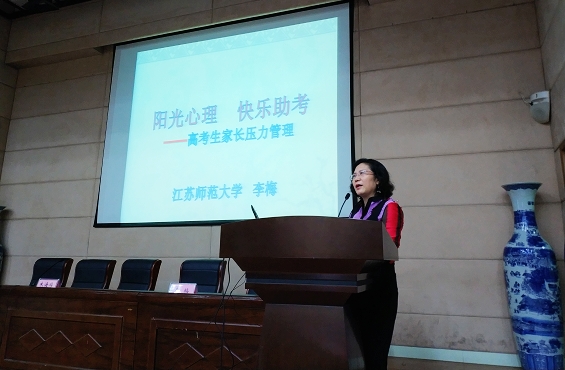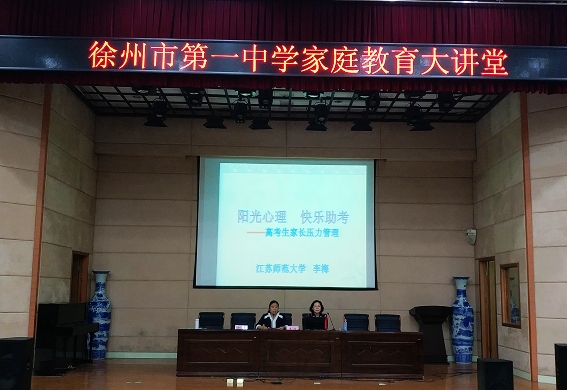 2018年5月26日上午9:30——12:00,徐州一中夹河校区毓秀楼礼堂里礼堂座无虚席,前排与走道也人气爆满,本期特邀江苏师范大学心理学教授,资深高考心理报告专家李梅主讲《阳光心理 快乐助考——高考生家长压力管理》,450余位家长聆听了专家的讲座。