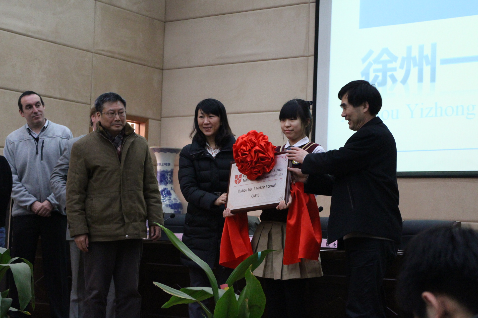 为了更好地适应未来社会发展的需要,更好地促进国际间教育交流,依托徐州一中及新加坡高博—布莱顿集团,徐州市首个剑桥国际考试中心正式落户徐州一中国际部。2013年1月9日下午,在徐州一中本部毓秀楼隆重举行国际部剑桥国际考试中心揭牌仪式暨国际教育大趋势及国际课程教育系列专业讲座。