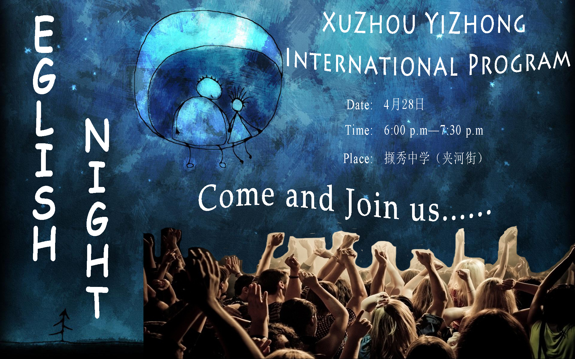 徐州一中国际部首届“英语之夜”将于4月28日晚6点至7点半,在夹河街校区毓秀楼一楼举行,敬请前来参加!