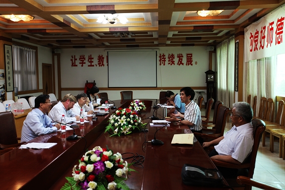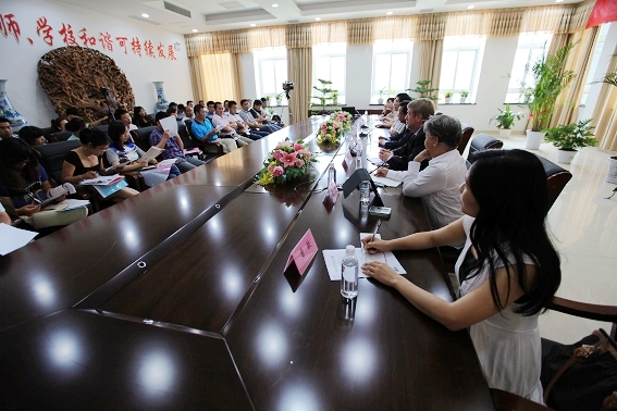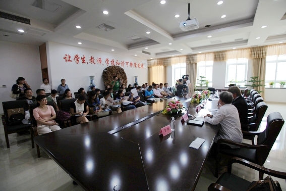 首先,王校长介绍一中国际班办学三年来的经验和成果,接着又介绍了与高博-布莱顿教育集团合作创建一中国际部的背景、合作办学的目标、管理机制等。 接着董事长赖炳荣就“什么是国际化人才,其特征水平能力,以及如何培养孩子具备这种能力”发表了看法。最后克里斯托弗·贝尔先生畅谈了“我们国际部的课程具备哪些优势?我们培养出来的学生出国以后在哪些方面会与众不同?”等问题。