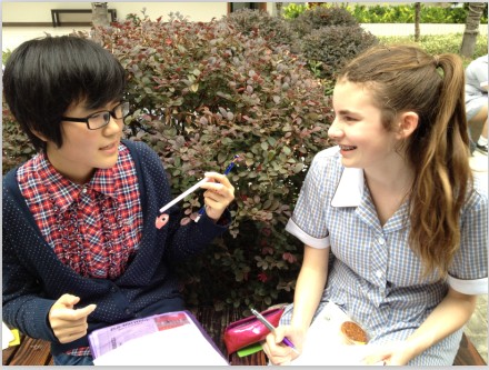 2012年9月24日,正值周一,上午的课程结束后,国际部的师生们便开始为迎接下午即将到来的访问团做准备。约下午两点,女孩子们的出现顿时成为校园里一道亮丽的风景线,她们身着校服,面带微笑,谨慎而又好奇地观察着美丽的校园。